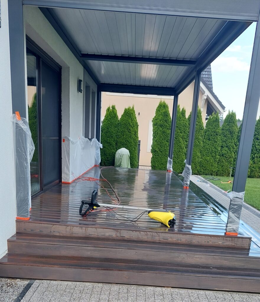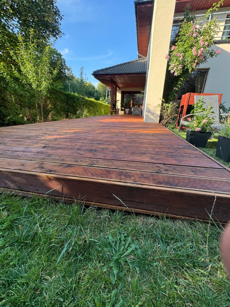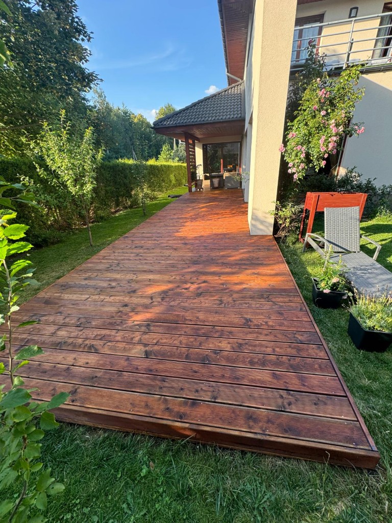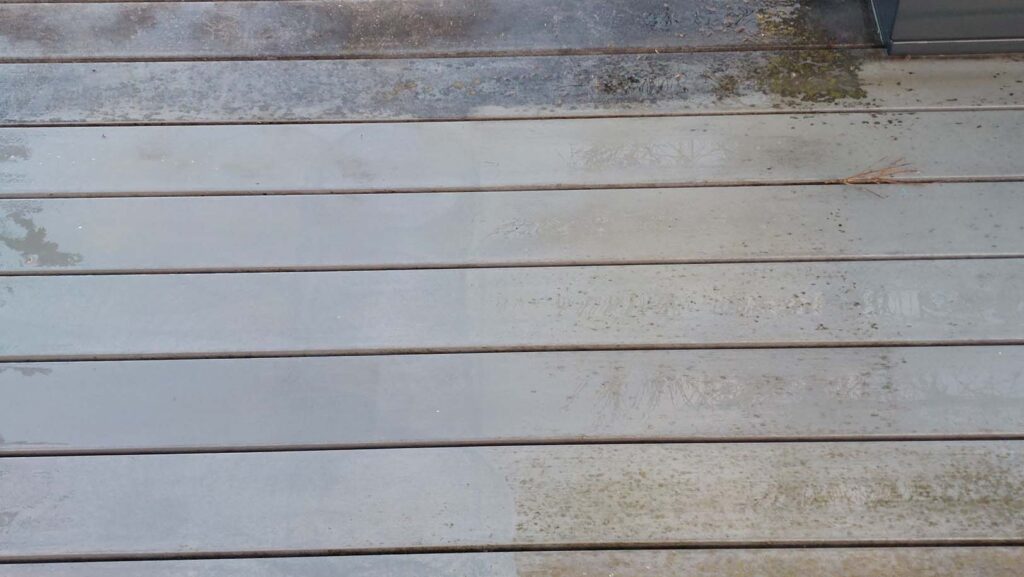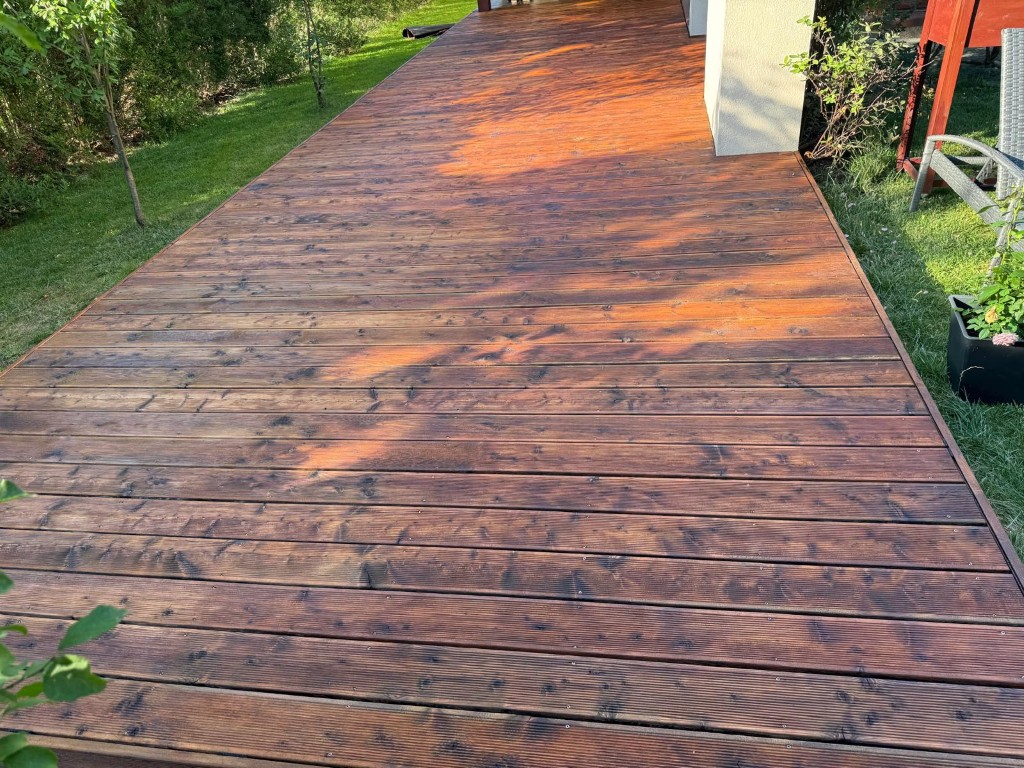 Czyszczenie standardowe polega na użyciu szorowarki do desek tarasowych oraz chemii do renowacji drewna. Szorowarka dba o to aby brud i glony na deskach zostały fizycznie usunięte, a chemia dodatkowo ułatwia ten proces rozpuszczając wierzchnią warstwę starego oleju oraz brudu.